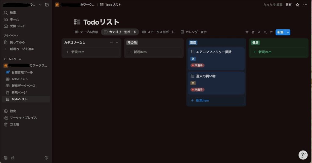 例:会議メモ、採用パイプライン、コンテンツカレンダー、読書ログ、家計簿 など