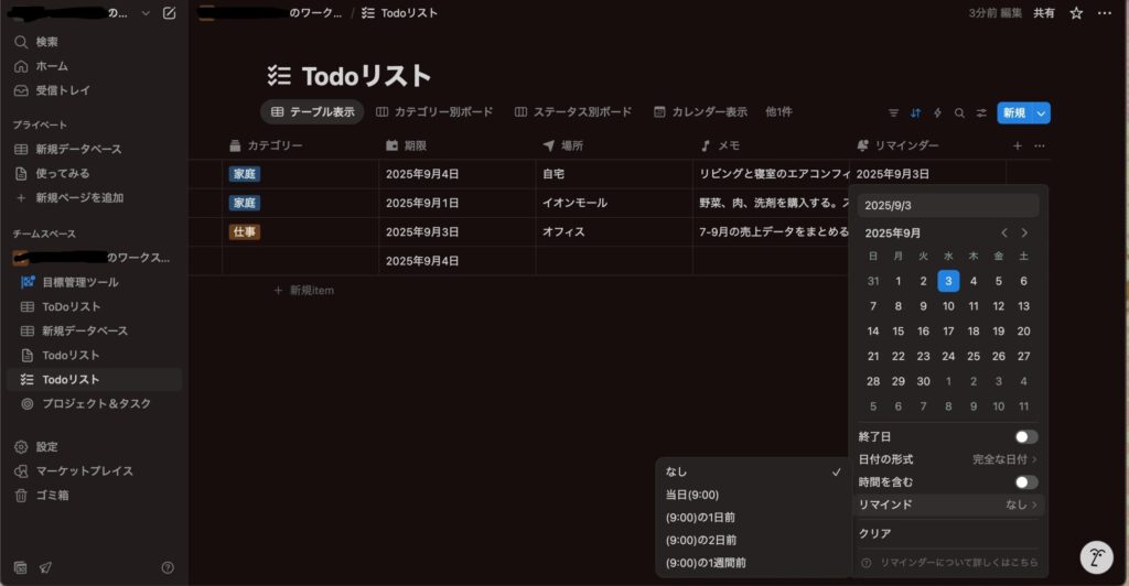 Todoリストを作っても、うっかり期日を忘れていたり、締め切りギリギリになることもあります。忘れてしまうのはしょうがないことなので、リマインド機能を活用しましょう。