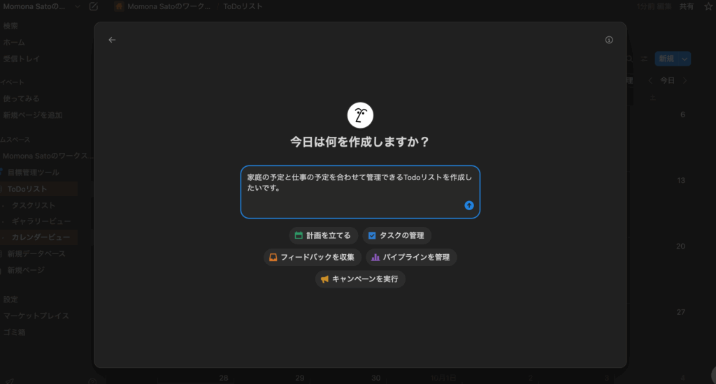 使い方がわからない、どのような機能があるか把握していない場合は、AIで作成してもらい、Notionの機能や操作に慣れながら使っていくとよいでしょう。