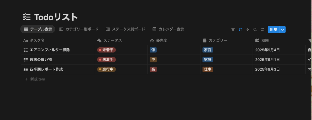 - ビュー(テーブル/ボード/カレンダー)の使い分け
