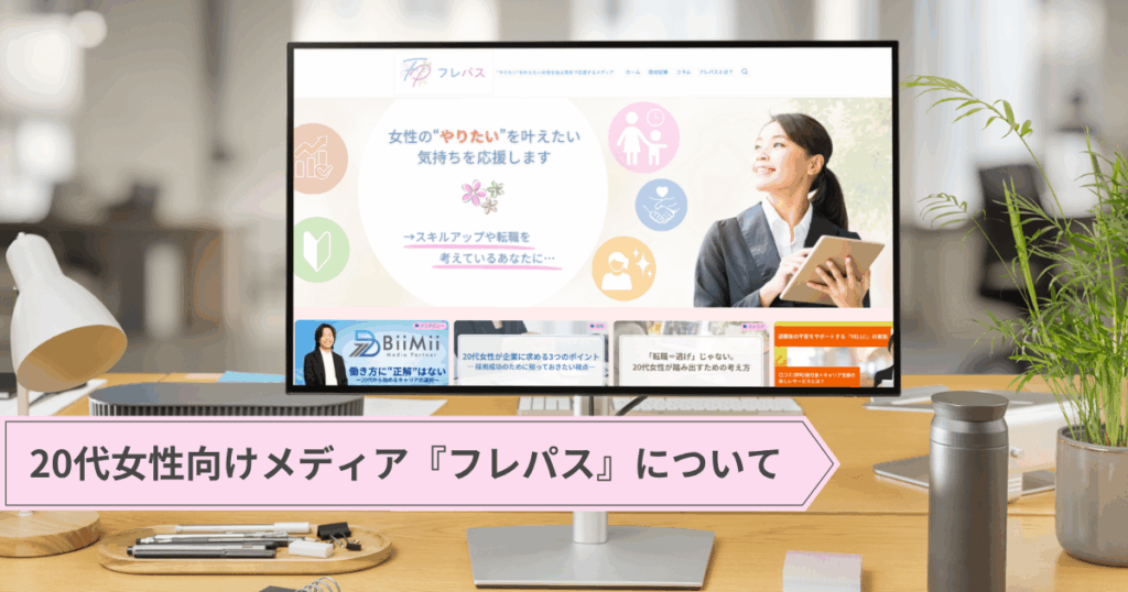 『フレパス』は、「自分らしい働き方を叶えたい20代女性」に向けた発信と、女性の採用や働きやすい職場づくりに力を入れている企業を取材・特集するメディアです。